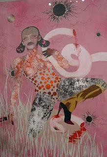 Wow. The minute I walked into the gallery at MoMA, I was mesmerized by this piece, "Yo Mama" by Wangechi Mutu. She is quite amazing and I cannot wait to find out more about her. See the entire piece here. Sometimes, I see something that I know will effect my work in the future. I may not know right now how that will occur, but I have a visceral response to it that tells me so.