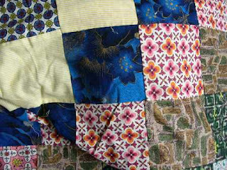 My mother keeps all of the old quilts made by my grandmother in a cedar chest in her bedroom. She was rummaging through them the other day and came across this quilt top. We have no idea where it came from. The fabrics are familiar (some were from old clothes), but we do not know who pieced it together. I had thought it was my mother, but she said no. Perhaps my grandmother was given the fabric from us and she then returned the unbound top? It is compsed of several vintage fabrics, some of them Hawaiian. It has now been added to my incredibly long list of projects to complete.
