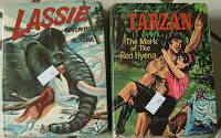 These were published in the sixties in Racine, WI. I know that I have nothing in the image to give you scale. They are about 4 x 5 inches. Normally, I would just leave it alone, but I have to show and comment on just a few of the images. I have not looked closely at the entire content because I am sure I am going to have to comment on the racial stereotypes contained in both stories. I will save that for another day. You see, Lassie encounters some "native" Alaskans on her journey..