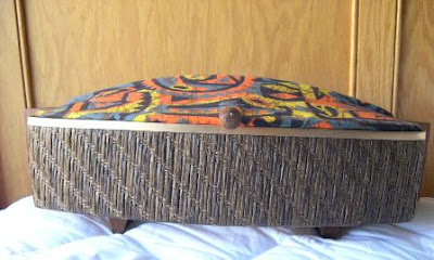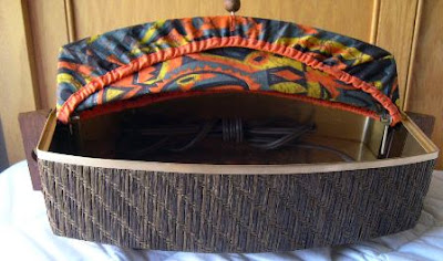 I saw this on the shelf and had to take it. At first I had no idea what it was. I just liked the fabric and the shape. When I opened it up I figured out what it was.