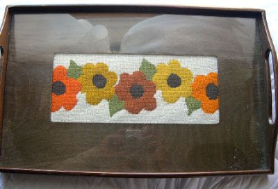This serving tray is designed so that you can place any artwork inside. I bought it because I was enamored with the floral embroidery already inside.