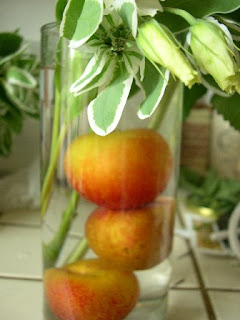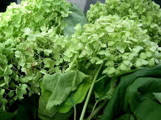 Many of the choices I had made previously have changed. The small plums were now twice the price so I had to purchase the much larger ones. The white flowers from last week were narrowed to only the choice of the ones I purchased as well as the white lilies. Everything else was not available this week. After my floral purchases were complete, I decided that I might be in need of some more filler flowers in another texture. (Sound the trumpets) That is when my Mom said she would go pick me some snowballs. They are absolutely huge.