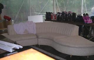 But seriously, look at the curve on this beauty. I have to say that it was very clean for a vintage white sofa in a tent at a rummage sale.
