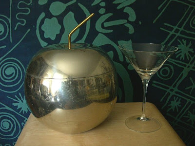 For some reason I have always admired these shiny vintage ice buckets shaped like apples. I think it is the shape that gets me. That and the fact that it is a bright, shiny object. (ha!) Anyway, I walked into a thrift store the other day and there it was in a huge pile of stuff on a shelf. Mine! I think I might use it as a cookie jar as well. I forgot what a pain it is to shoot such a shiny reflective object.