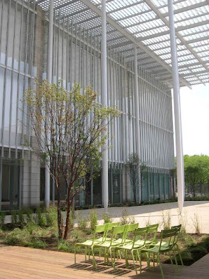 I almost forgot to post about the reason I went to the city the week before last. It was to visist the new modern wing of the Art Institute of Chicago. There was free admission for the first week that it was open. Since I am on a budget, I was all over that. The building was designed by Renzo Piano and it is really quite beautiful. You can enter from the Monroe Street entrance seen above or you can take the pedestrian bridge (Nichols Bridgeway) as I did, which will take you directly from Millenium Park over Monroe street and into the third level of the modern wing.