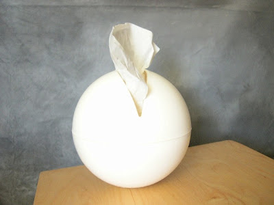 If you guessed a tissue dispenser, good for you! A "Ball o' Tissue" to be exact. It has a nice weighted bottom and was made in 1979 by Aronie-Garment.