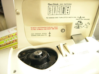 It uses these cams which give the machine to sew whatever pattern is shown on that particular disk. When I purchased the machine there was a handful of disks that came with it. Over time, I acquired more disks. This was just pure luck. I later found a grocery bag full of these disks at another sale.
