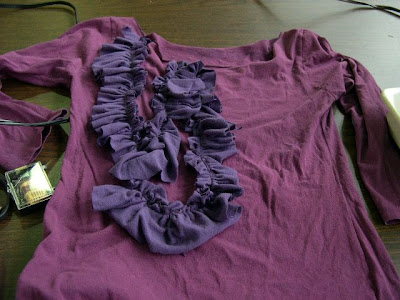 After that I began to let go and just try experimenting with all of the stuff I had in front of me. Some worked out, others did not. It was a great opportunity to just sit and have a good time while making things. For me, that turned out to be 4 hours on day one of sitting and making. There were volunteers in every area to help you out if you needed anything. I was having a good old time with my Janome sewing machine which ran a lot smoother than my old workhorse at home. The picture above was an experiment with 2 t-shirts I found in the pile. I would have preferred to use t-shirts that were the the same color, but I worked with what I had in order to see how the fabric would work with the idea in my head. It was a good laboratory for my thoughts.