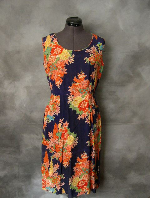 My mother brought this dress to me the other day and told me that I could sell it. It is in incredible vintage condition and is made of this beautiful Japanese fabric. She had come across it in her closet and thought I might like to sell it. I am thinking that I would not.