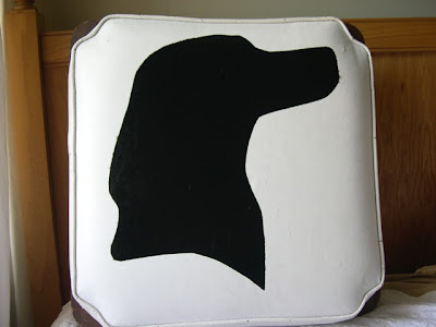 Do you remember this old stool I bought for $5 a while back? It was to be used to help someone get up on the bed or sit by the window with their chin on the sill. Well, I scrubbed it clean with my old electric toothbrush. Yesterday I finally got around to finishing it by spray painting this image on the top. I used contact paper instead of frisket paper because of the exorbitant price of the frisket paper. I did not get the clean line I would have gotten with the frisket paper, but that's OK. I don't know why I am worrying about it when it will only be four paws and a furry butt that will be coming in contact with it.