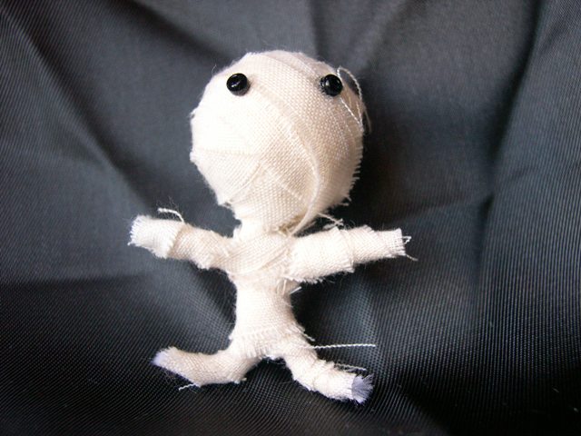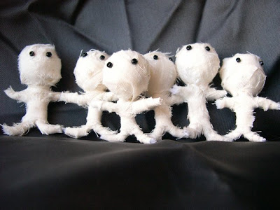 These are my little mummies I made to send out with my Halloween treats in the mail. They stand about 1 1/2 inches tall. Happy Friday and here's to some good trick or treatin'!