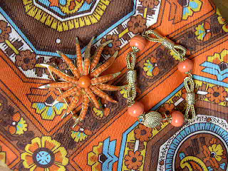 I do not know why, but I have been getting into the color coral lately. I cannot explain it. I have never worn anything even closely related to it in my life. It came upon me all of a sudden. I think I would understand it better if I lived in a warm climate, but I do not. I purchased this pin, bracelet and scarf all in the same day at different locations. Perhaps it was the soft warm breezes of spring that have recently come upon us.......