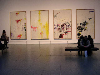 OK, I know that MoMA is not out of the museum mainstream (especially since I interned there), but I wanted to go and see the new architecture. Yes, that is how long it has been since my last visit. I had read so much about the project even before it had begun, that my anticipation was beyond belief. I was not disappointed. What an incredible space. I know that there maybe those naysayers who complain about the somewhat steep admission price $20, but I just want to say that it is well worth every penny. In fact, if you can only budget one museum visit into your travels in NYC, look no further. As a "six degrees" aside, the Cy Twombly "The Four Seasons: Spring, Summer, Autumn, and Winter" piece ,above top, served as an inspiration for some dresses of the same name by Ralph Rucci which are included in that exhibition as well.
