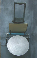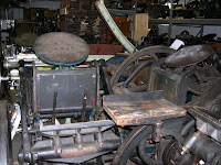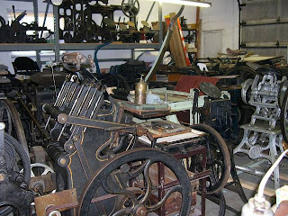 Several months ago I stumbled across a blog written by a woman who was learning how to use her own table top letterpress. I was immediately hypnotized. I started to search the web looking for all things letterpress. I looked on ebay to see what there was for sale and what the auction prices were like. Very often the prices were much higher than I expected and much more than I had to spend. I began to read Briar press regularly. It was there that I came across the listing for the annual sale at the Platen Press Museum in Zion. I wanted to purchase a letterpress as a birthday present to myself. (Hey, if nobody else is going to do it, you might as well do it yourself). After saving all of my pennies from every extra job I took on over the past months, I arrived at the sale prepared to find my press. I did . Here it is. It is a lovely Kelsey Excelsior 5 x 8.