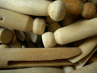 Today, on my way home from work I spotted these in a large bag. I really have no use for clothespins. My thoughts went to the annual ornament swap and the possibilities that lurked within this bag.