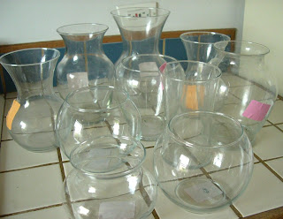 I will head to the farmer's market to see what flowers they will have for me to use. I am thinking of two possibilities for arrangements. One would use hosta leaves to line the inside of the vases. The other would use colorful, small fruit to fill the bottom of the vase with the flowers on top. I would use cranberries, kumquats, or something like that. OK, the wheels have finally begin to turn. I will report more as I make progress.