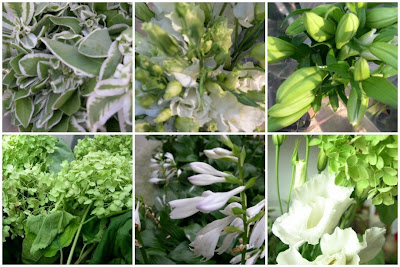 The other options are a large vase of snowballs with some contrast of the green leaves for the side board. Also, the possibility of two of the ball vases with only white lilies. I also have yet to pick any of the white flowers from the hostas that are on the side of my building. Those will add height and a pure clean white to the mix.
