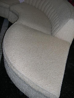 But seriously, look at the curve on this beauty. I have to say that it was very clean for a vintage white sofa in a tent at a rummage sale.
