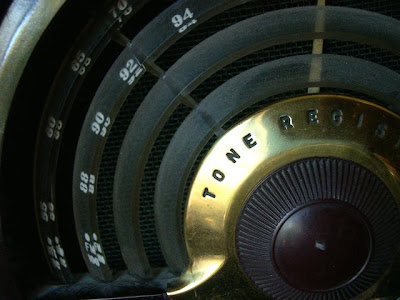As I noted earlier, I hit a church rummage sale this weekend. I was not in need of anything. I just wanted to take a look around and see if I could find anything interesting. I picked up a few items here and there. Found a few nice items in the linen department to use in future projects. I wandered into the electronics department to see if there was any camera equipment I might be interested in. (As if I need any more camera equipment.) I stopped when I saw several old radios sitting on a shelf. They were all really nice, but I thought that this one stood out from the crowd. It was in pristine condition. It it a nice hefty radio. I decided that it made a great visual piece if nothing else. When I got it home I plugged it in and it works. I looked it up on the Internet to get some more information, It was manufactured in 1948. I think it is pretty cool.