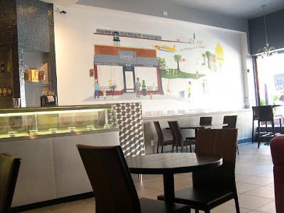 It is a fairly large space with a nice modern decor. I like the cute mural near the front entrance.