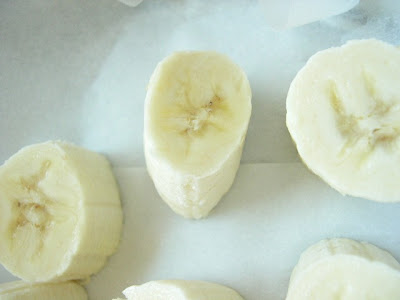 That was it. I rolled some in chopped peanuts and left some plain. I stuck them in the freezer where they are currently transforming into mini frozen banana sticks. Easy, huh?
