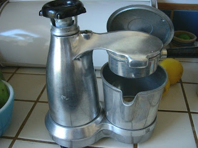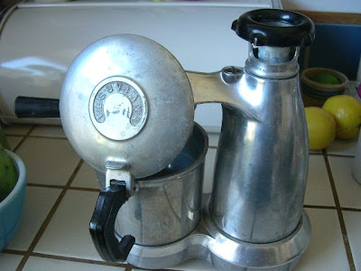 I have actually had this beautiful contraption for several months now. It is a vintage Vesuviana coffee/espresso maker. I found it at a rummage sale. I have very little information on it other than what I can find on the internet. These were manufactured in Naples and I believe they stopped making them in the sixties. So, parts are pretty impossible to find. Directions were what I could put together from posts on the web. The reason I have had it for so long without trying it out was that exactly 2 months ago I started the Clean program. I had to give up all caffeine. I used to be a daily morning espresso drinker. I will never forget the withdrawal headache. Instead of going back to my old habits, I just continued to stick with the program. This past weekend I decided that I would allow myself one cup of decaf per week as a treat to myself. I did not want the caffeine, but I wanted to taste an espresso every now and again. So, I did. It was good. The machine is interesting to watch operate. I do not know if I will want a drink every week, but it will be nice to know I can pull out my Vesuviana and use it if I choose.