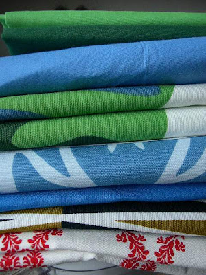 I am sure that I have mentioned how large my fabric stash is. Large enough that there is no reason for me to buy any new fabric for several years...probably the rest of my life. I was at Ikea shopping for some very small items and I walked out with the stack of fabrics above. The bottom two were on sale.