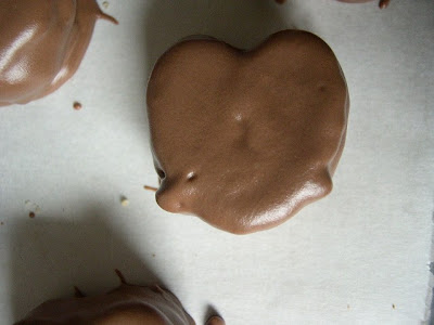 Remember these from earlier in the week? They turned out to be a cute tasty Valentine's treat that is easy to make. Although, I still need to figure out how to make them a little more heart-shaped. I found the tweaked recipe online and then tweaked it a little bit more. The blog author did not not know how many hearts the recipe yielded so I added that as well.