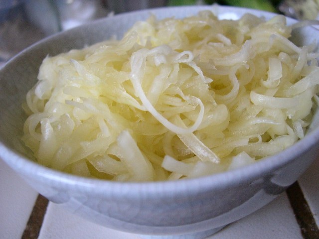 - Peel papaya, slice in half. Remove all seeds. Grate papaya with a grater or mandoline. Place in a large bowl.